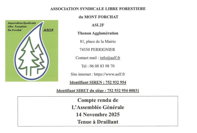 L'ASSOCIATION SYNDICALE LIBRE FORESTIERE DU MONT FORCHAT à tenu son assemblée générale à Draillant le 14 novembre 2025.